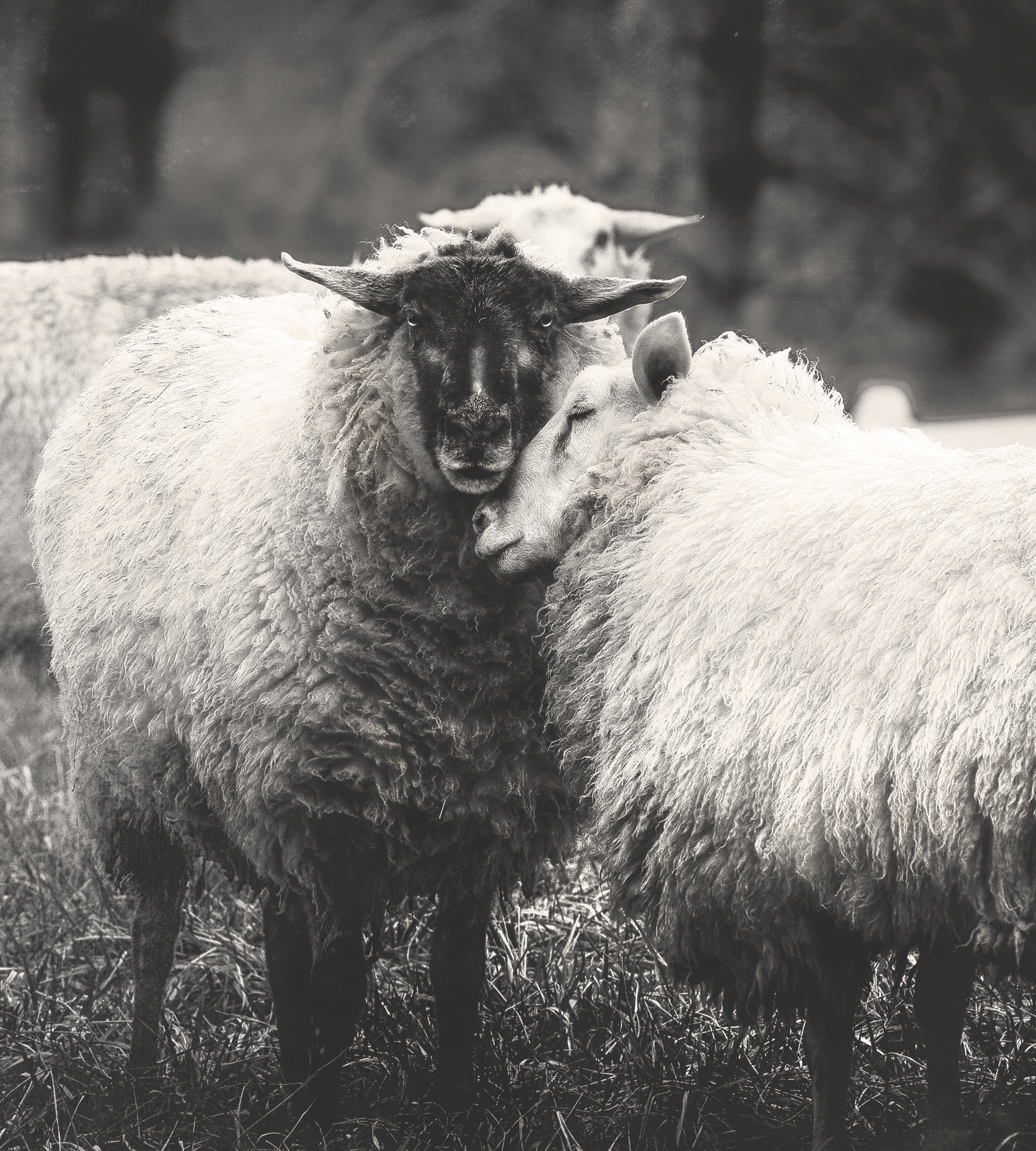 Sheep standing in dark setting with dramatic lighting View fullsize